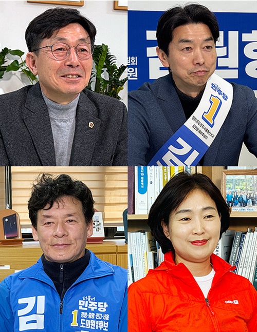 왼쪽(위)부터 강상수 의원, 김권형 예비후보, 김봉삼 예비후보, 강하영 의원.(현직, 정당, 가나다 순)