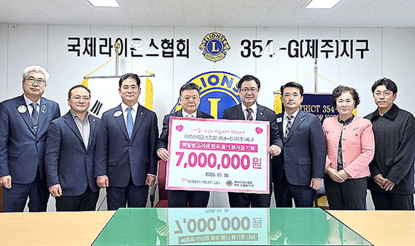 [한라일보] 국제라이온스협회 354-G 제주지구(총재 윤재철)는 지난달 30일 국제재단 임팩트 교부금 사업으로 700만원을 (사)제주특별자치도백혈병소아암협회(협회장 손태일)에 전달했다.