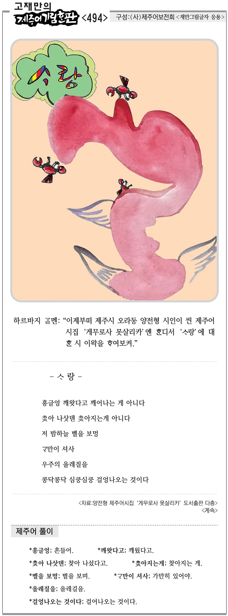 [고재만의 제주어기림혼판] 제주어 풀이(494)