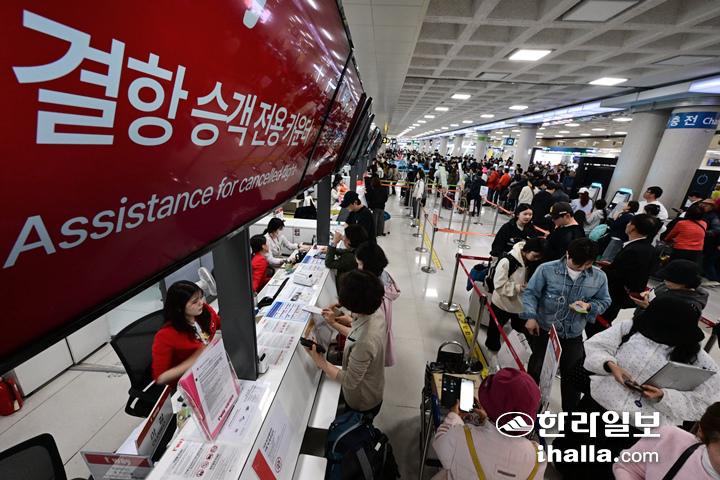 제주 기점 항공편 무더기 결항에 체류객 지원 '주의' 발효