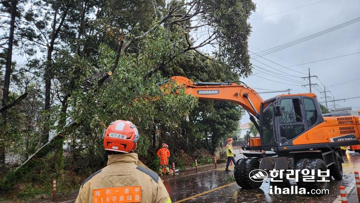 제주도소방안전본부에 따르면 이날(오후 5시 기준) 강풍·호우로 인한 피해 신고는 29건에 달했다. 이날 오전 7시 29분쯤 제주시 한림읍의 방풍나무가 쓰러졌다는 신고가 접수된 이후 제주시 애월읍·구좌읍·조천읍과 서귀포시 대포동 등에서 도로에 나무가 쓰러지거나 부러졌다는 신고가 접수돼 소방대원들이 출동해 안전조치를 했다.