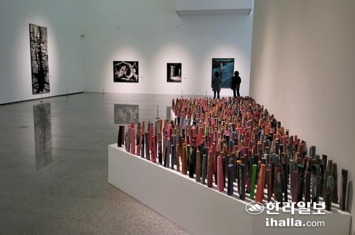 제주도립미술관 기획전에 윤석남의 '빛의 파종' 등이 전시되어 있다. 진선희기자