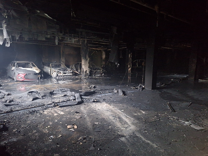 10일 새벽 4시 13분쯤 서귀포시 안덕면의 한 근린생활시설 지하주차장에서 화재가 발생했다. 제주소방안전본부 제공