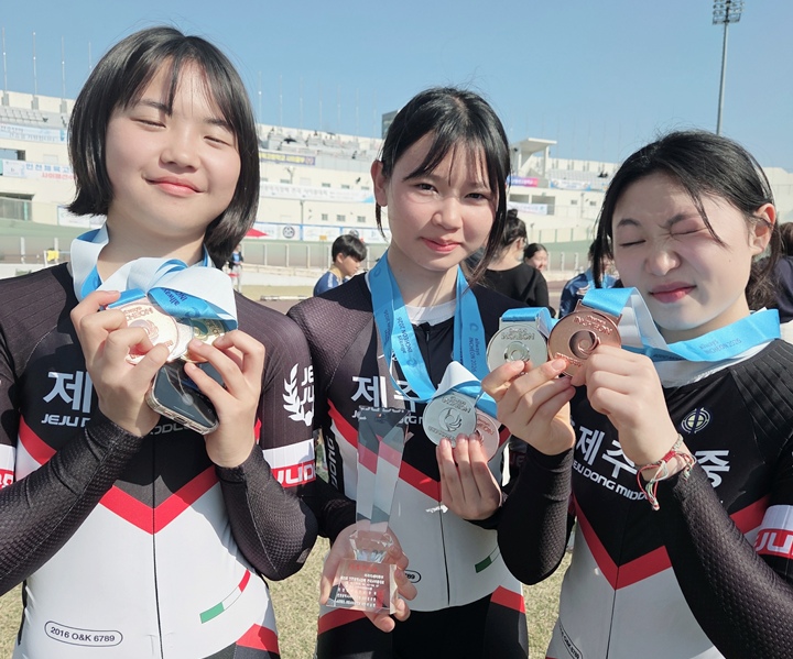 제주동중 장수임, 정하은, 오윤정(왼쪽부터). 제주자치도사이클연맹 제공