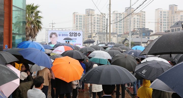12일 열린 진보당 양영수 후보 선거사무소 개소식.