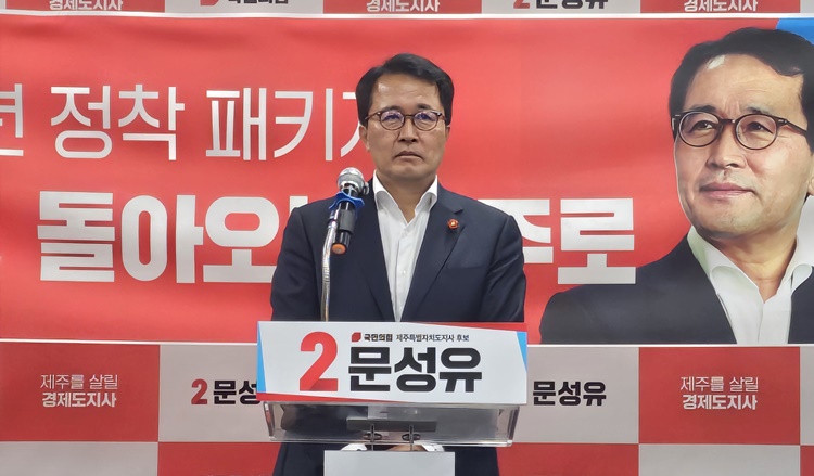 국민의힘 문성유 제주특별자치도지사 후보가 15일 본인 선거사무소에서 청년 정책을 발표했다. 오소범기자