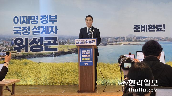 15일 제주시 연북로 선거사무소에서 기자회견을 진행하고 있는 위성곤 후보. 김채현기자
