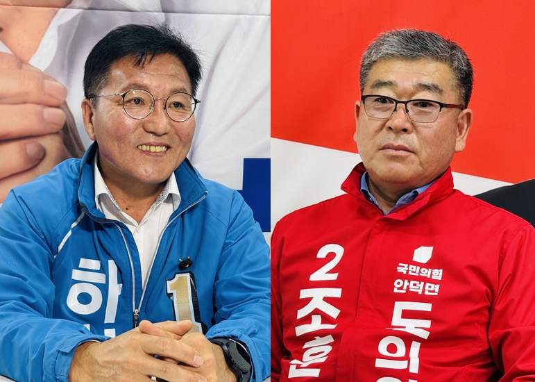 왼쪽부터 더불어민주당 하성용 예비후보, 국민의힘 조훈배 예비후보.
