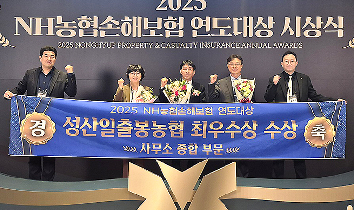 성산일출봉농협(조합장 박명종)은 지난 14일 그랜드인터컨티넨탈 서울 호텔에서 열린 '농협손해보험 연도대상' 시상식에서 사무소 종합 부문 최우수상을 수상했다.