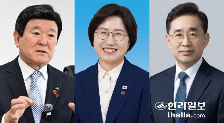 사진 왼쪽부터 김광수 제주도교육감과 제주도교육감 선거에 출마한 고의숙, 송문석 예비후보. 한라일보 DB