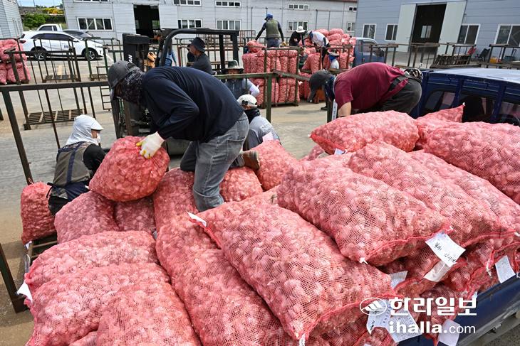 [한라일보] 파종부터 수확 작업까지 많은 인력이 필요해 대표적 노동집약적 작물로 손꼽히는 제주산 마늘 재배면적이 해마다 감소하고 있다. 마늘 재배를 접는 농가에서는 대신 양파, 양배추, 월동무를 심으면서 일부 밭작물의 과잉생산은 갈수록 심각해지고 있다.