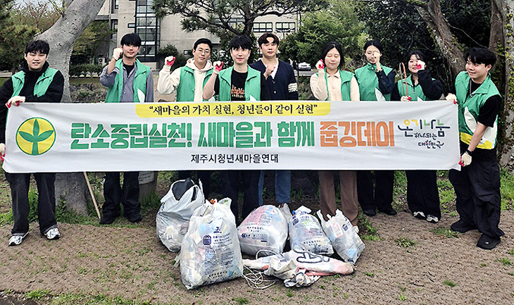 제주시청년새마을연대(회장 이준형)는 지난 18일 회원 10명이 모인 가운데 아라초 일대에서 '탄소중립실천! 새마을과 함께 줍깅데이'를 실시했다.