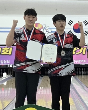 전국학생볼링대회 은메달을 차지한 제주대 안도현·표재윤.