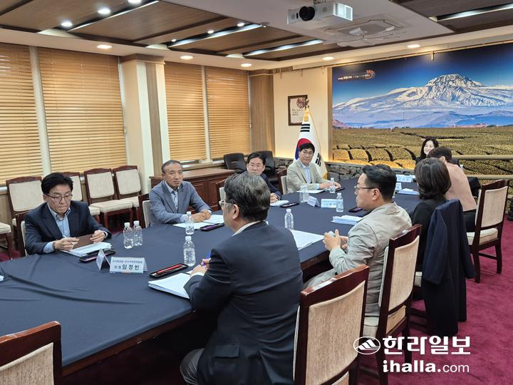 제주도 선거구획정위원회가 22일 오전 10시 제주도청 백록홀에서 회의를 열고 있다. 김채현기자