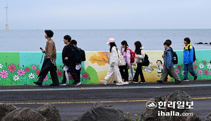 한담해안 꽃길 산책하는 어르신들