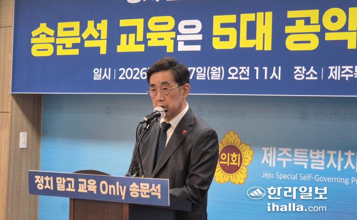 [한라일보] 송문석 제주특별자치도교육감 예비후보가 27일 "단일화는 없다"고 공식 선언했다.