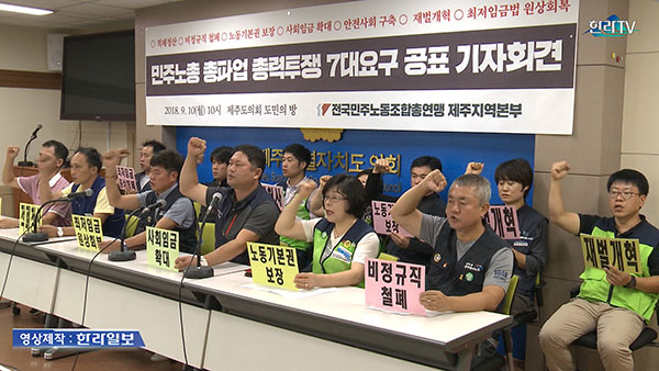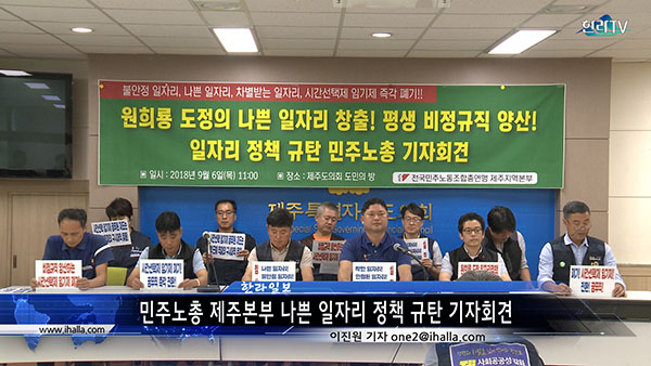 민주노총 제주본부 나쁜 일자리 정책 규탄 기자회견