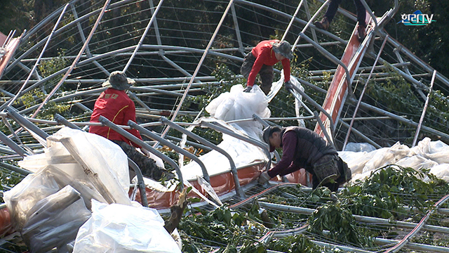 제주도 폭설 때문에... 무너진 비닐하우스 철거