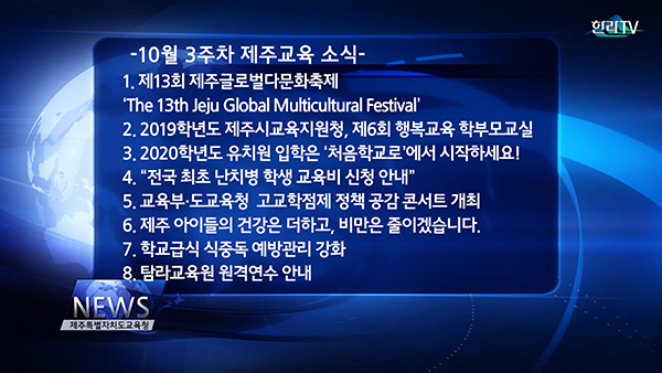 2019 제주특별자치도 교육청뉴스 10월3주차