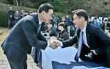 [한라일보] 19일 제주대 정문 앞에서 열린 더불어민주당 위성곤 의원의 6·3지방선거 제주자치도지사 선거 출마 선언에 앞서 당내 경쟁자인 문대림 의원과 악수하고 있다. 위 의원은 이날 회견에서 다른 후보와의 연대 가능성에 …
