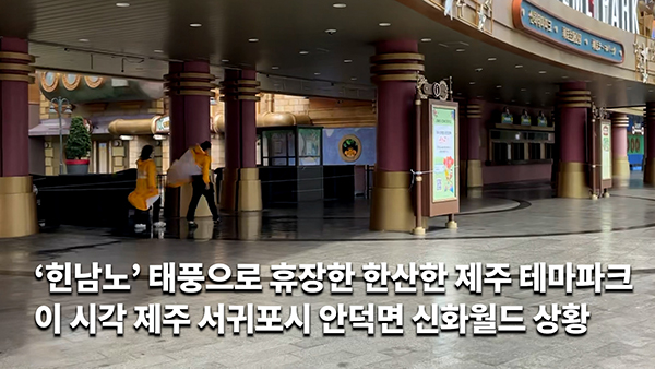 [영상] ‘힌남노’ 태풍으로 휴장 한산한 제주 테마파크…이 시각 제주 서귀포시 안덕면 신화월드 상황