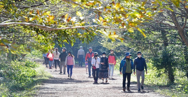 "마스크를 끼고 있어 가을숲의 향기를 맘껏 들이마시지 못하는 아쉬움이 있지만, 제주의 숲은 걸을 때마다 건강해지는 느낌이에요."  '2020 제주산림문화체험 사려니숲 에코힐링 체험' 행사가 서귀포시 표선면 남조로변에 위치…