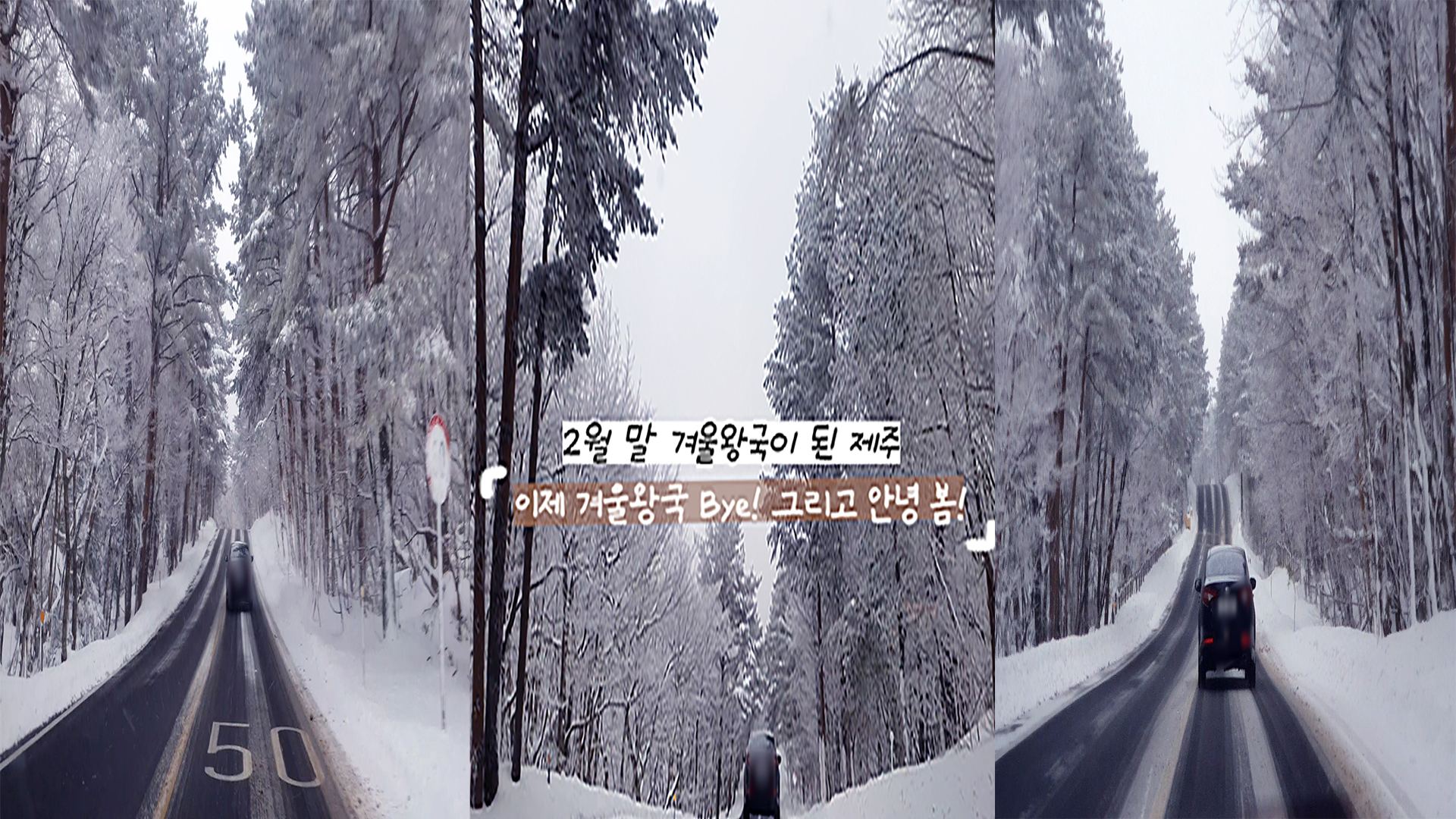 2월 20일 겨울왕국이 된 제주 1100도로 영상입니다.