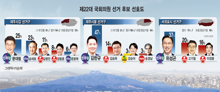 [총선 여론조사] 문대림-송재호 접전… 김한규·위성곤 우세