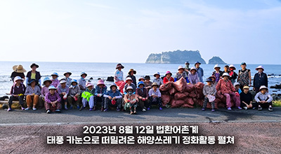 법환동어촌계(계장 고승철)는 12일(오늘) 마을어장에 쓰레기 5톤을 수거 및 정화하는 ‘법환어촌계 해양정화 활동’을 펼쳤다. 이번 행사는 법환동어촌계가 제6호 태풍 '카눈’으로 인해 유입된 해양쓰레기를 신속하게 수거해…